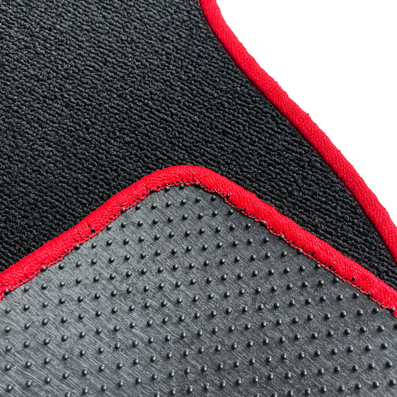 Each set of Floor Mats we offer is tailored for a specific look, feel, price point and vehicle. We offer multiple fabrics, colors, serging (trim) and badging. In some cases, certain colors are only available in certain fabrics, but serging is available in over 20 complimentary colors. We generally offer fabrics in colors that compliment the OEM interiors, but if you have a certain look / color combo in mind - place your order for a 'CUSTOM' set - and let us know in the checkout notes what you're after.